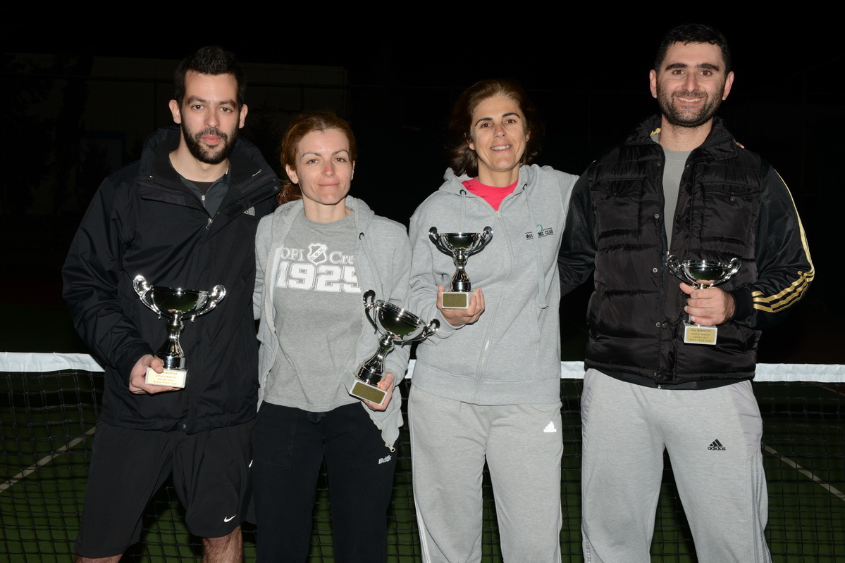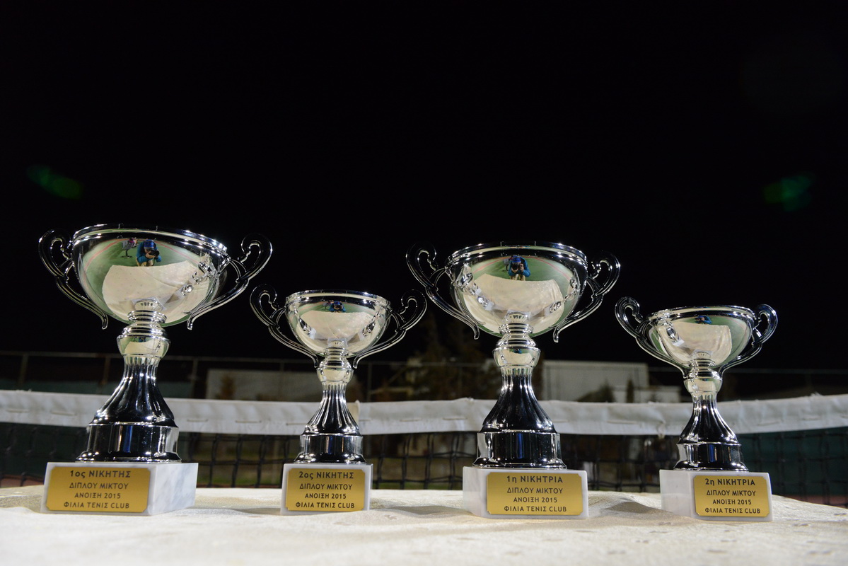 Στις 15/3/2015 ολοκληρώθηκε το εσωτερικό τουρνουά Διπλού Μικτού που διοργάνωσε το ΦΙΛΙΑ ΤΕΝΙΣ CLUB. Σε ένα συναρπαστικό παιχνίδι, διάρκειας 2,5 ωρών, νικητές αναδείχτηκαν οι Αυγουστάκη Μαρκέλλα και Πετράκης Κώστας, που επικράτησαν των Ασαργιώτη Ελένη και Φανουργιάκη Γιάννη με σκορ 6/7(11) 7/6(4) 10-5. Το Διοικητικό Συμβούλιο και οι προπονητές του Σωματείου συγχαίρουν όλους τους αθλητές και αθλήτριες για τη συμμετοχή και την προσπάθειά τους και τους εύχονται πάντα καλούς αγώνες!